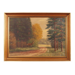 Signiertes, einzigartiges Gemälde, Brücke im Wald. Mit Holzrahmen.