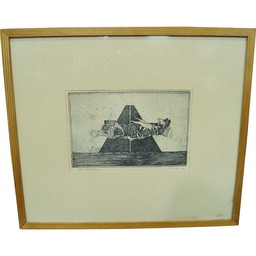 Lithographie Jahrgang surréaliste von Ragnar Wollschläger, 1973