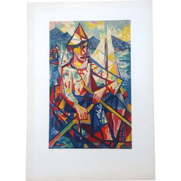 Farblithografie "Båtparad" von Waldemar Lorentzon, 1953