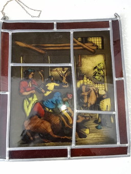 Antiek Glas in Lood Slagers Slachthuis KoeienAntiek Glas in Lood Slagers Slachthuis Koeien