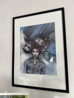 Chinesische Tinte auf getöntem Papier 250g. Format 40x30cm. Rahmen aus Naturholz.