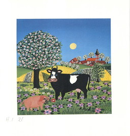 Jan Cremer: Gerahmte Lithographie: Herzen gelb - 1992 großes Werk