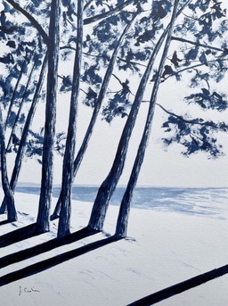 Tusche auf weißem Fabrianopapier 300g Sujet: Cap Coz Format 40x30 cm.