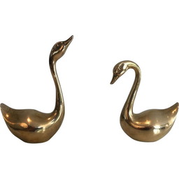 Paar französische Enten aus Messing, 1970er JahrePaar französische Enten aus Messing, 1970er Jahre