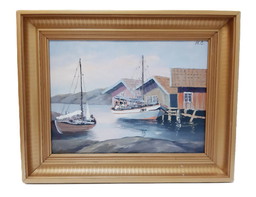Modernistisches Ölgemälde „Boote am Strand“ von Carl Berndtsson (1902–1982)Modernistisches Ölgemälde „Boote am Strand“ von Carl Berndtsson (1902–1982)
