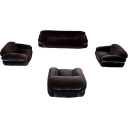 Wohnzimmergarnitur Sesann aus braunem Alpakasamt von Gianfranco Frattini für Cassina, 1972