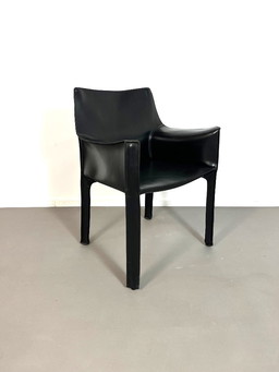 Schwarzer Ledersessel CAB 413 von Mario Bellini für Cassina, 1980er Jahre.Schwarzer Ledersessel CAB 413 von Mario Bellini für Cassina, 1980er Jahre.