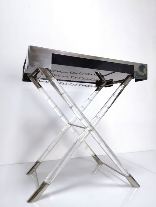 Maison Jansen Style Tabletttisch aus Lucite, Bambusimitat und Chrom, 1970er Jahre