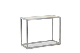 Maison Jansen. Konsole aus gebürstetem Aluminium mit rückseitig lackierter Glasplatte. 1970