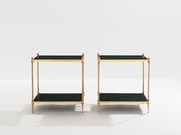 Maison Jansen, Paar zweistöckige Beistelltische, Messing, grüner Lack, 1970er Jahre