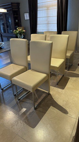 6x Rolf Benz Stühle beige Leder6x Rolf Benz Stühle beige Leder