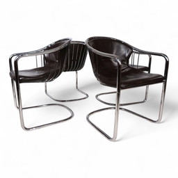 Set of 4 chrome dining chairs by Gastone Rinaldi for Thema, 1970
