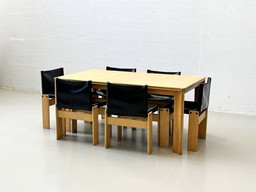 Set: 6 Stühle Modell Monk und Tisch von Afra und Tobia Scarpa für Molteni, 1973