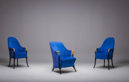 Paar Mid Century Modern Italienische Samt-Hochlehnsessel, 1950er Jahre