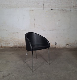 Kastel Kameo Akzentstuhl aus schwarzem Leder mit ChrombeinenKastel Kameo Akzentstuhl aus schwarzem Leder mit Chrombeinen