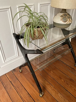 Vintage 1960S Lebensmittel Wagen in goldenem Messing und Glas italienisches Design