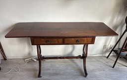 Schreibtisch mit Ledereinlage. 150 x 85 x 81 cm, Eichenholz-Finish.