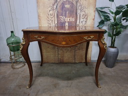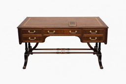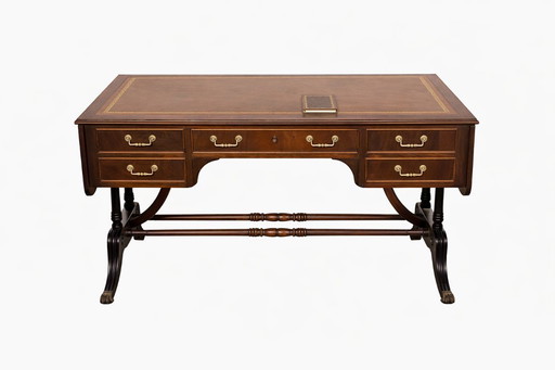19. Jahrhundert Schreibtisch Arbeitstisch Leder und Intarsien mit Blattgold