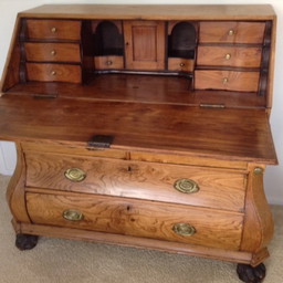 Antiker Ulmenschreibtisch, einfach geschwungen