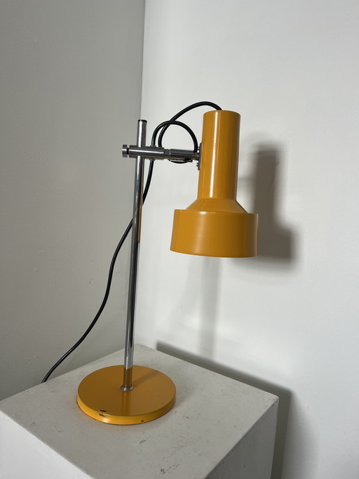 Vintage Scherenlampe ockergelb mit Ständer 1960er Jahre
