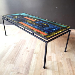 Moderner Couchtisch aus der Mitte des Jahrhunderts von Berthold Muller aus Messing und Mozaïec