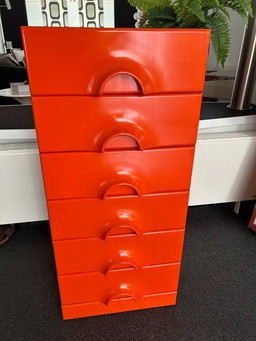 70er Jahre Beistelltisch/Bürocontainer/Zeitschriftenständer aus Resopal im Stil von Rolf Hesland, Hergestellt in Deutschland