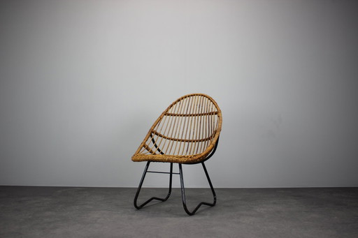 Mid-Century Rattan und Metall Esszimmerstuhl, Niederlande 1960'S