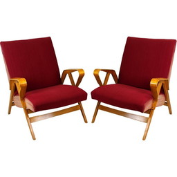 Dänisches Paar gepolsterter AX-Loungesessel mit hoher Rückenlehne aus rotem Leder von Hvidt und Molgaard Nielsen für Fritz Hanse