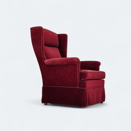1960er Jahre Dänischer Sessel, kirschroter Möbelvelours, Eschenholz, Original