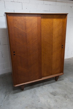Großer Kleiderschrank im Vintage-Design aus Teakholz mit Schiebetüren, 1960er Jahre