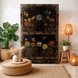 Vintage chinesischer Brautschrank, Sideboard, Chinoiserie-Schrank