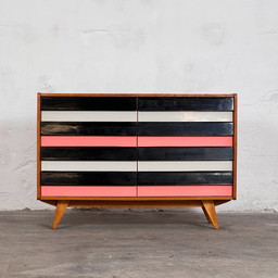 Vintage Kommode mit rot-rosa Kunststoffschubladen 1970