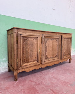 4-TÜRIGES SIDEBOARD AUS GRAUEM EICHENHOLZ AUF MASSIVEM SOCKEL OHNE GRIFFE
