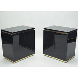 Zwei Kommoden aus schwarzem Lack und Messing von J.C. Mahey für Maison Romeo, 1970