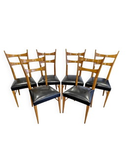 Skandinavische Stühle (6er-Serie) Teakholz Und Skai Schwarz Vintage 1970'S