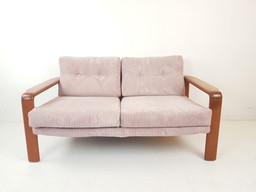 Two-Seater Scandinavian Sofa, Teak & Light Grey Fabric