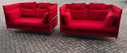 Harvink New Jazz Sofa 2 Sitzer Rot Opera Stoff & Schwarz Leder