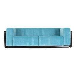 Cornaro Zweisitzer-Sofa aus Iroko-Holz und blauem Samt von Carlo Scarpa für Studio Simon, Italien, 1974