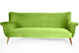Große 1950S Vintage geschwungene Sofa in rotem Samt italienisches Design