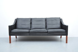 Dänisches schwarzes Ledersofa in Teak und Leder, 1960er Jahre