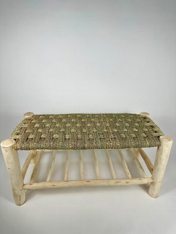 Marokkanische handgeflochtene Bank – Boho-Rustikaler Stil, Sitzfläche aus natürlichen PalmblätternMarokkanische handgeflochtene Bank – Boho-Rustikaler Stil, Sitzfläche aus natürlichen Palmblättern