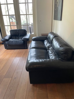 Leolux Bora Beta Sofa Set Schwarzes Leder 2.5 & 2 Sitzer Sofa