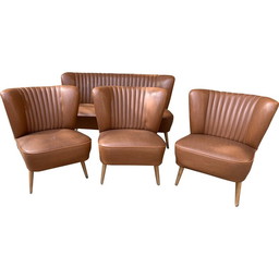 Mid Century Leder-Wohnzimmer-SetMid Century Leder-Wohnzimmer-Set