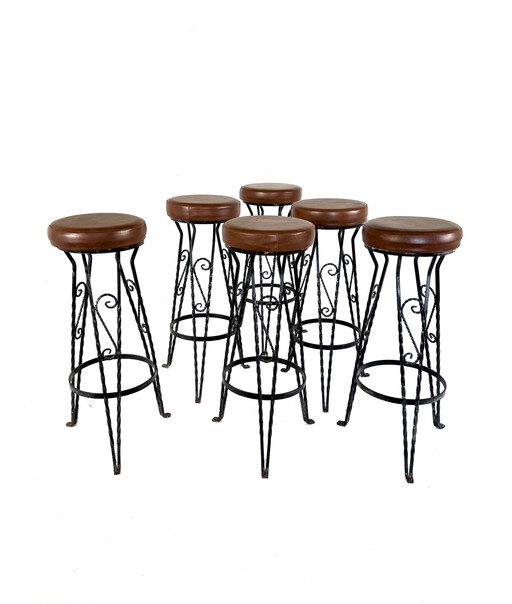6x Vintage-Barhocker im brutalistischen Stil der 60er Jahre