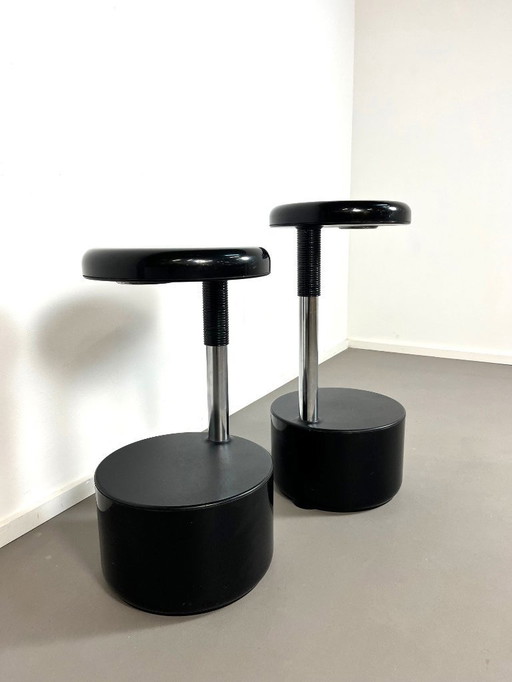 2 Schwarze Retro Barhocker Mit Lehne, Original 60Er Mit Rückschlag-Drehsitz / American Diner Style