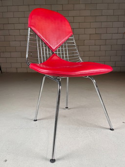 Paar Retro Stühle mit Chromgestell und roter Polsterung