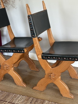 Vintage Satz Bram Sprij Stühle Eiche & Leder brutalistischen StilVintage Satz Bram Sprij Stühle Eiche & Leder brutalistischen Stil