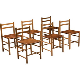 Satz von sechs brutalistischen belgischen Esszimmerstühlen