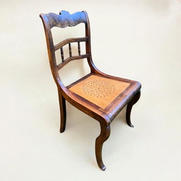 Französischer Wabi-Sabi-Stuhl aus Holz und Korbgeflecht, 1850er Jahre