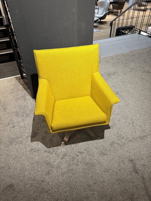4 Leolux Freyr Esszimmerstühle, Stoff Safire, Gelb